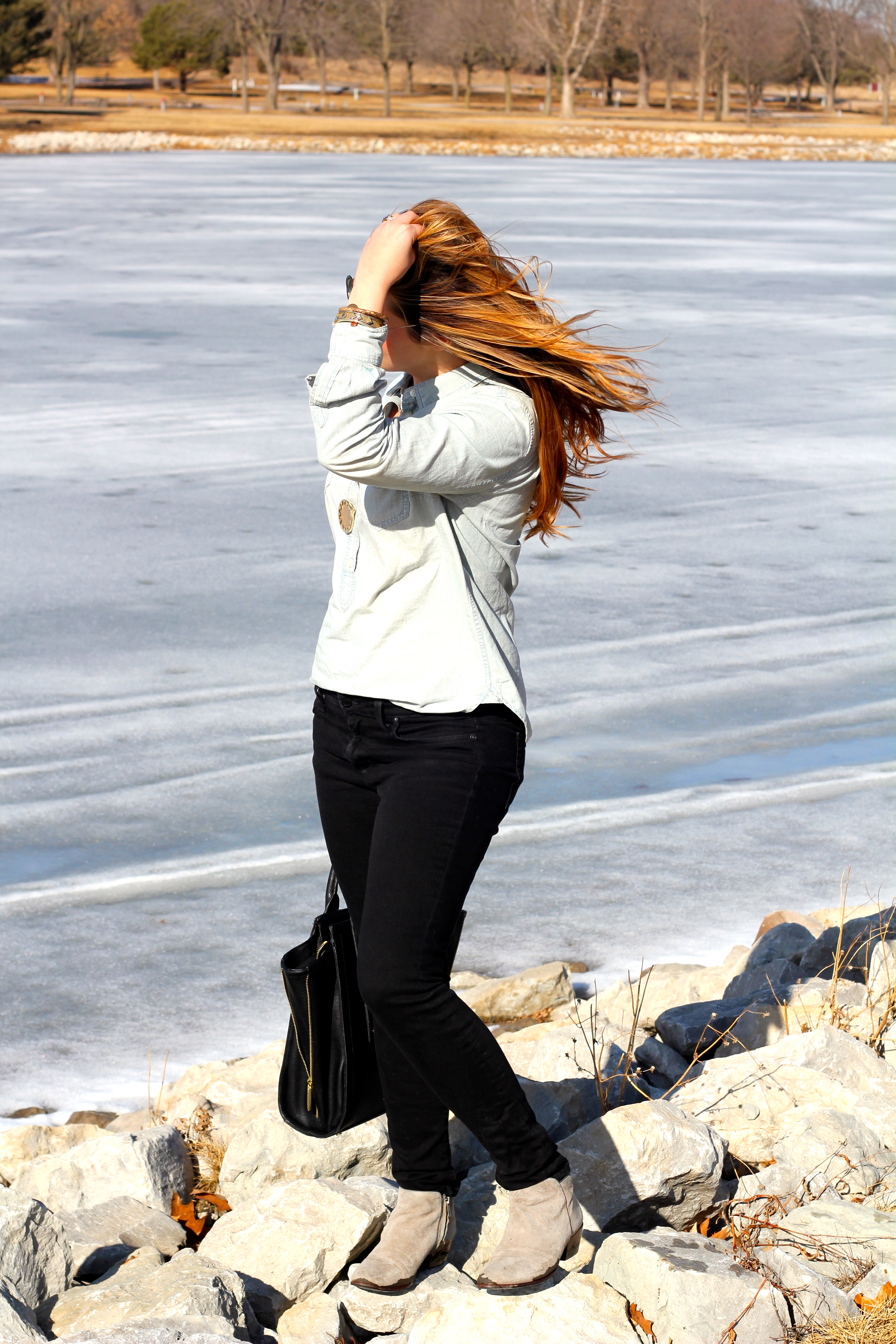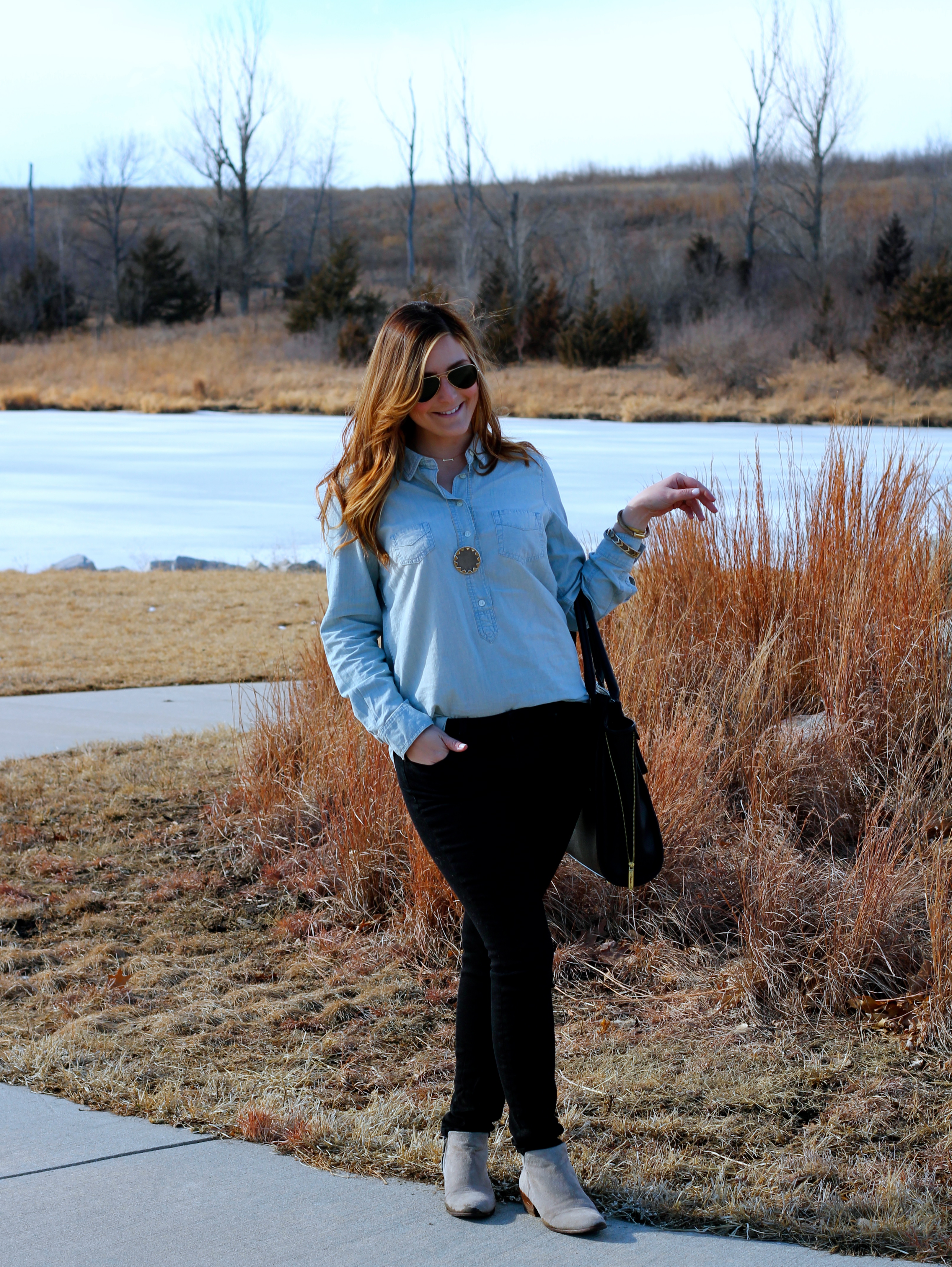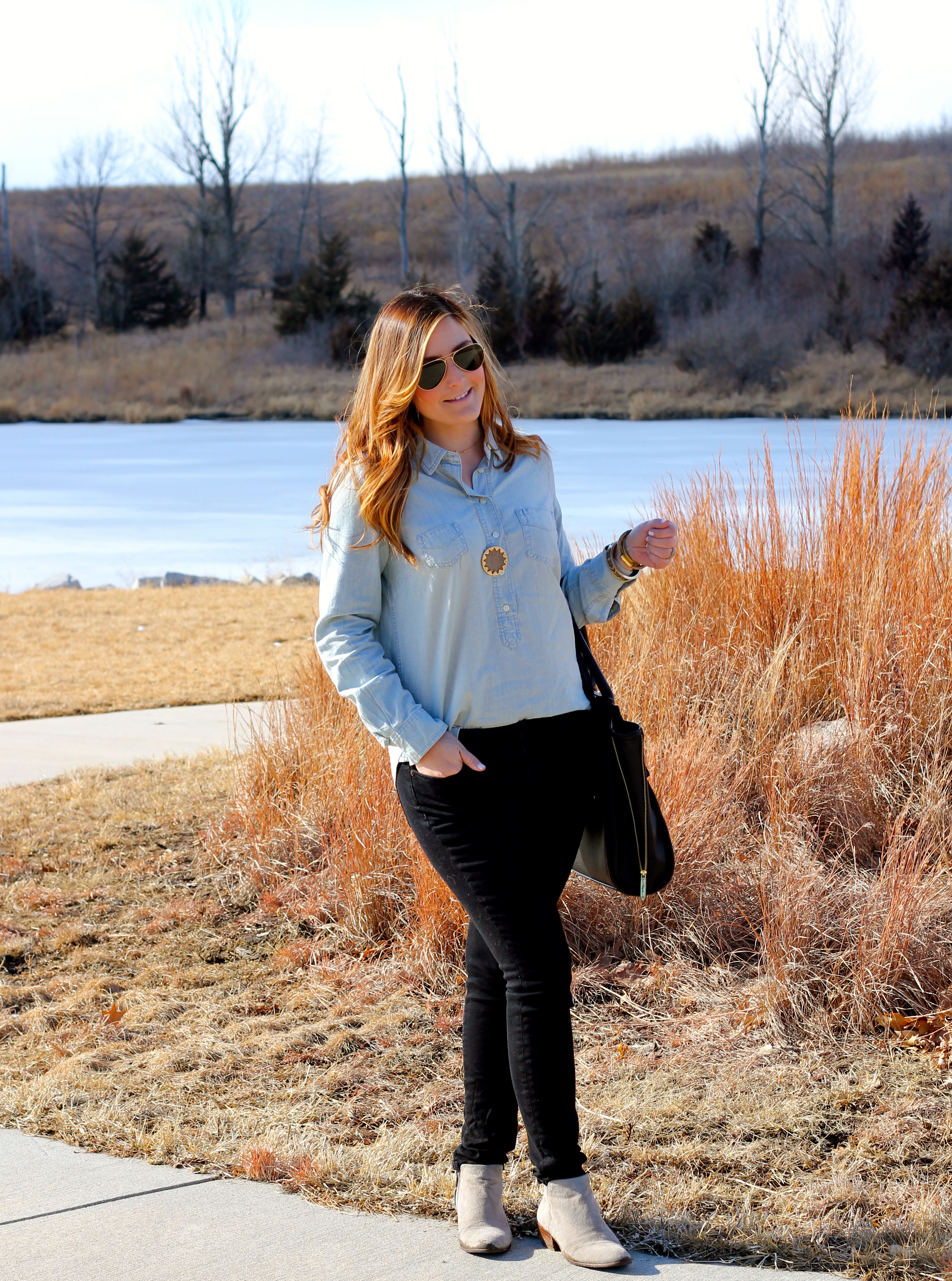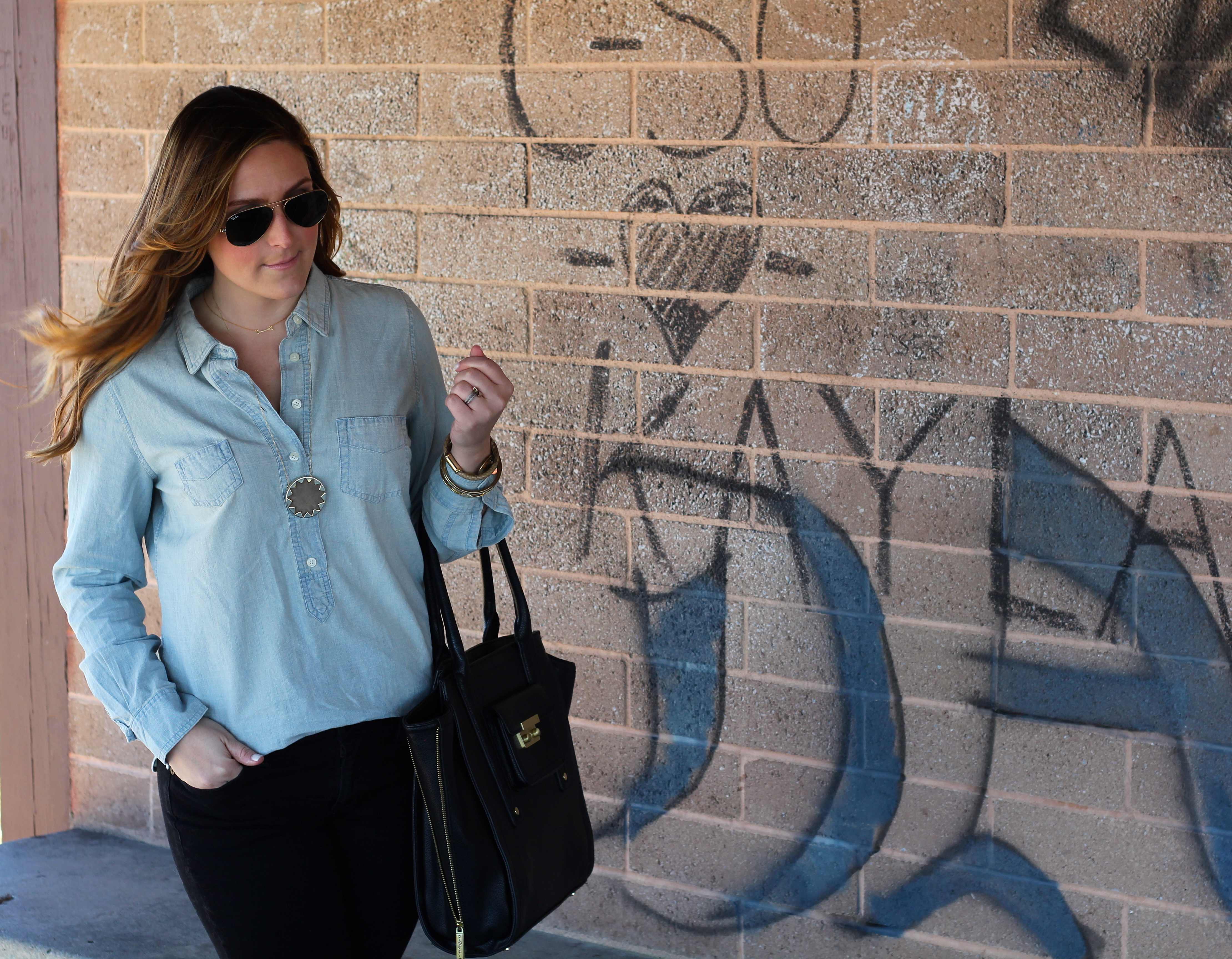 I love a denim shirt! You can never have too many. 😉 Again, I am wearing a Stella & Dot piece but also incorporated some HOH as it is another one of my favorite Jewelry lines and one of my favorite local boutique’s (Statement) carries some of their best and latest pieces! The line is just so versatile that I find myself able to wear the pieces with so much!
