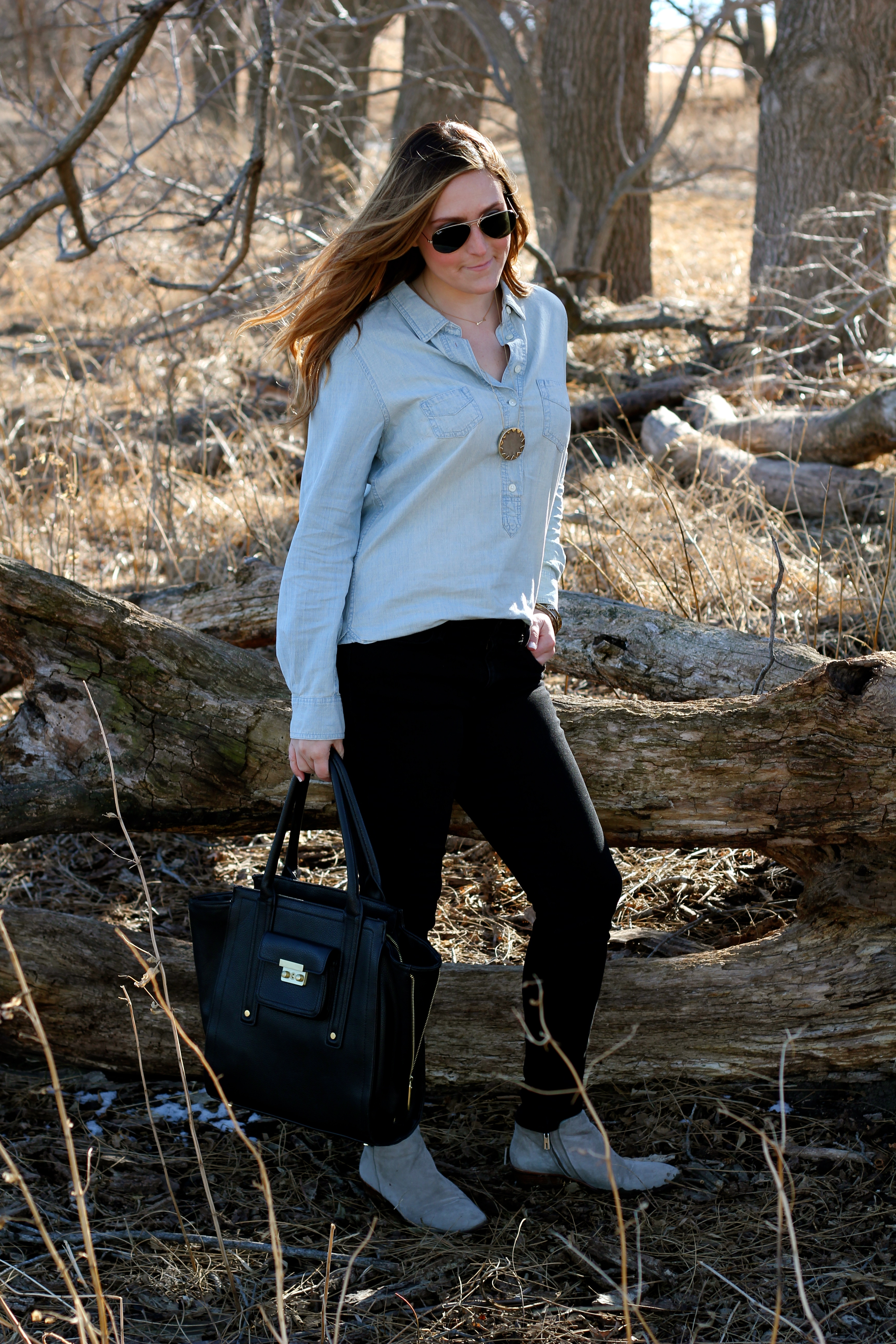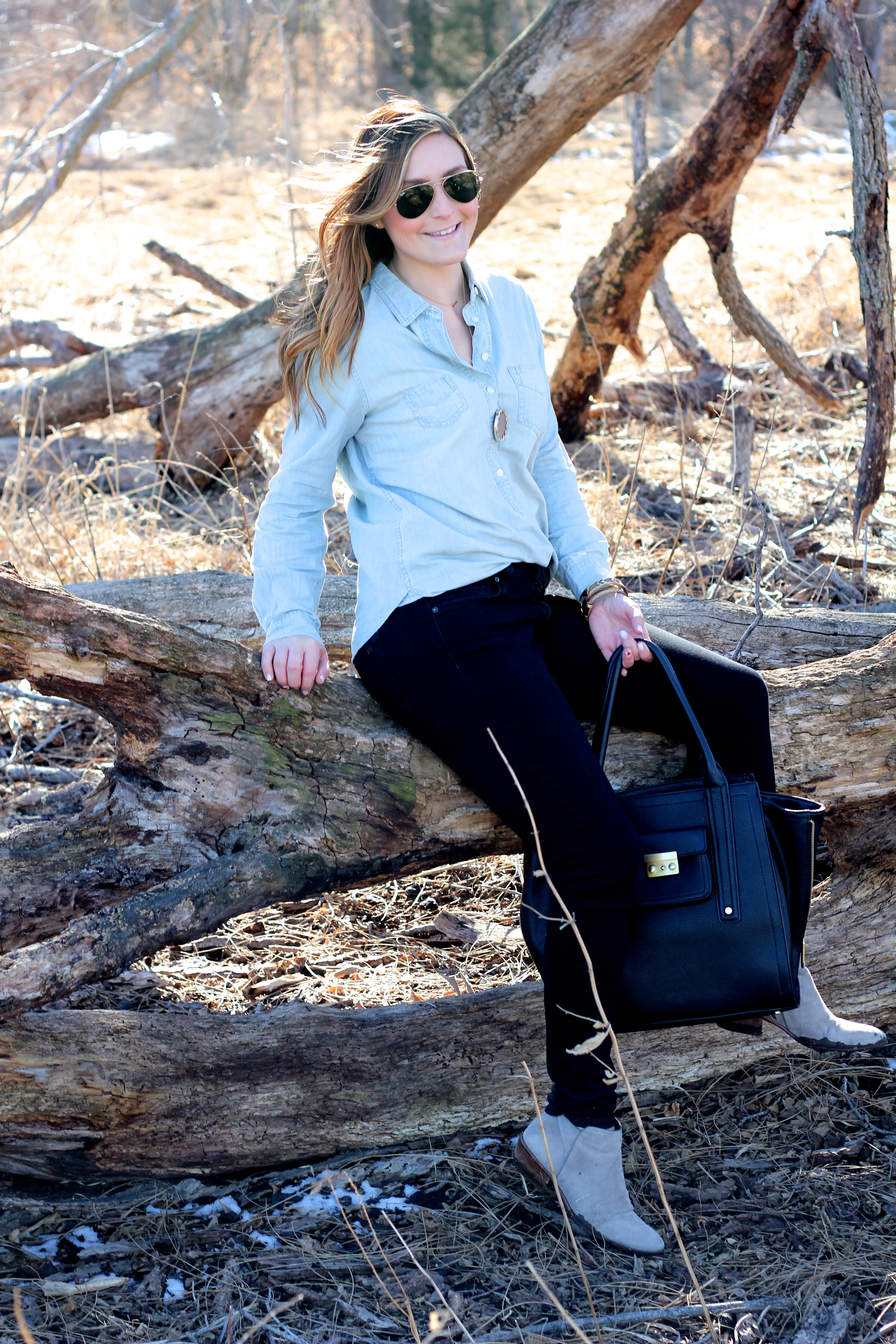 Top//J.Crew Outlet here//Jeans//Joe’s Jeans//Shoes//Sam Edelman//Bag//Phillip Lim for Target real deal here//Jewelry//House of Harlow found here and here //Stella & Dot//Sun Glasses//Ray-Ban