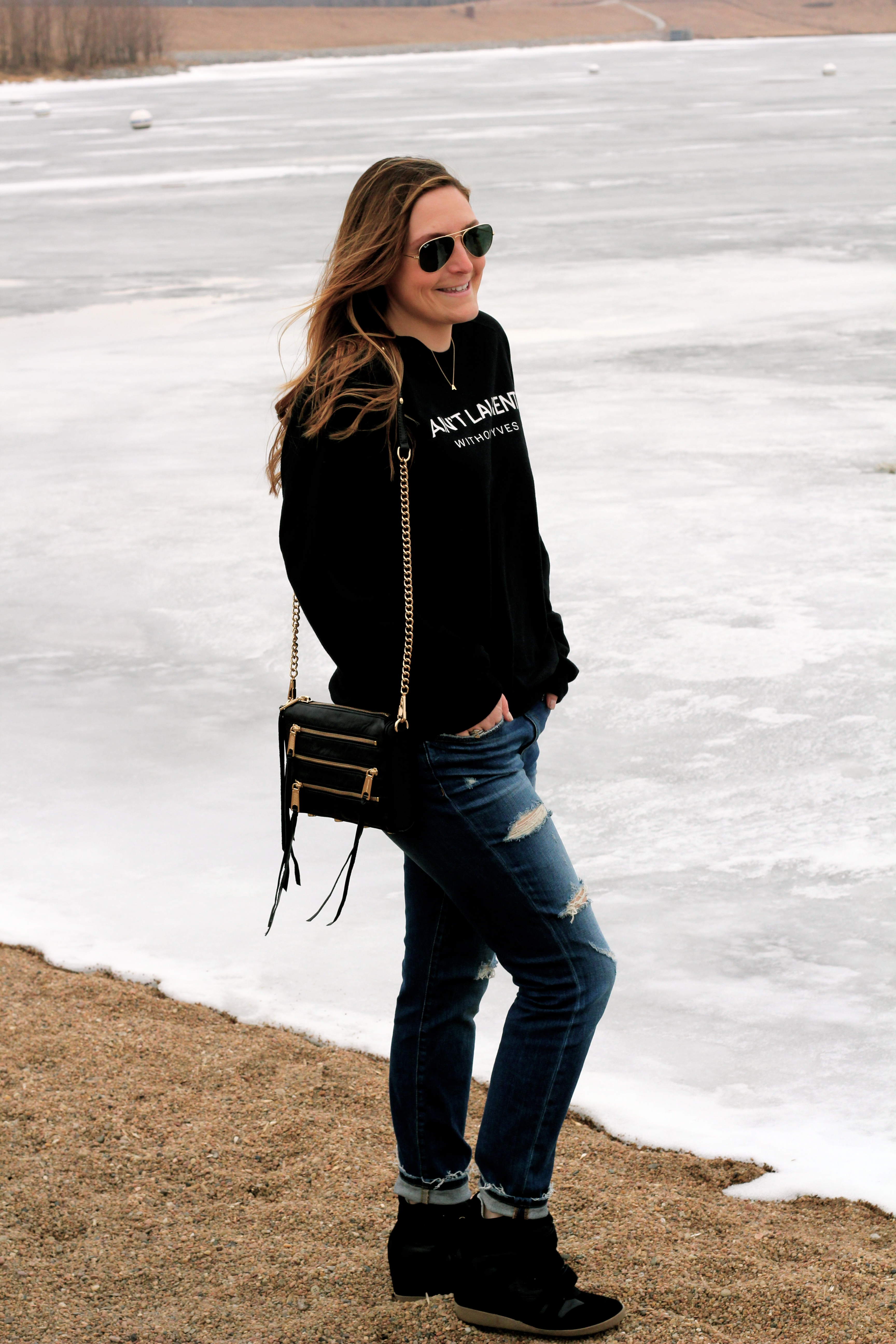 Sweatshirt//Revolve Clothing or Togs (local boutique)//Jeans//Joe’s similar here//Sneakers//Steve Madden similar here//Crossbody//Rebecca Minkoff here//Sunnies//Ray-Ban