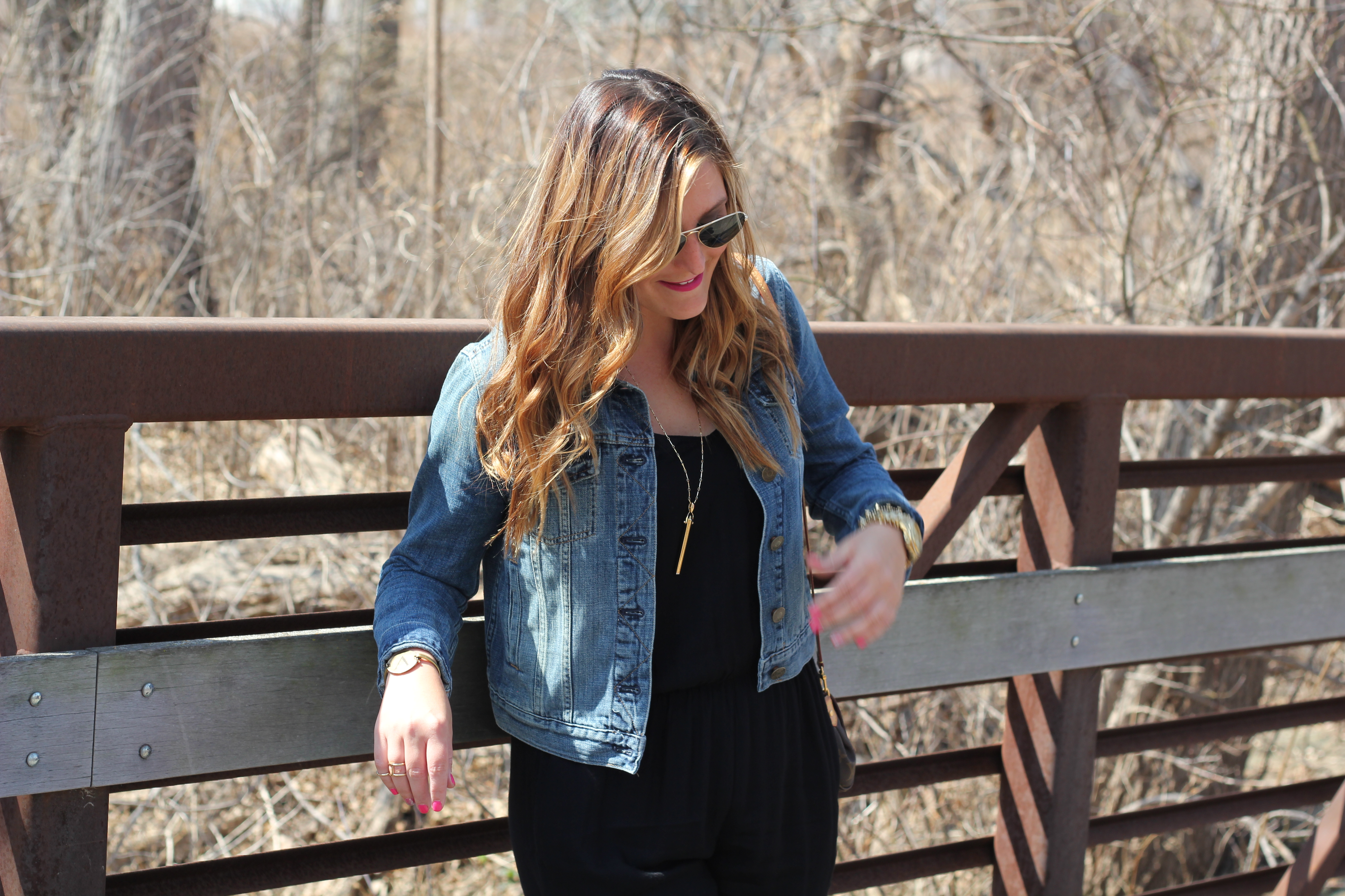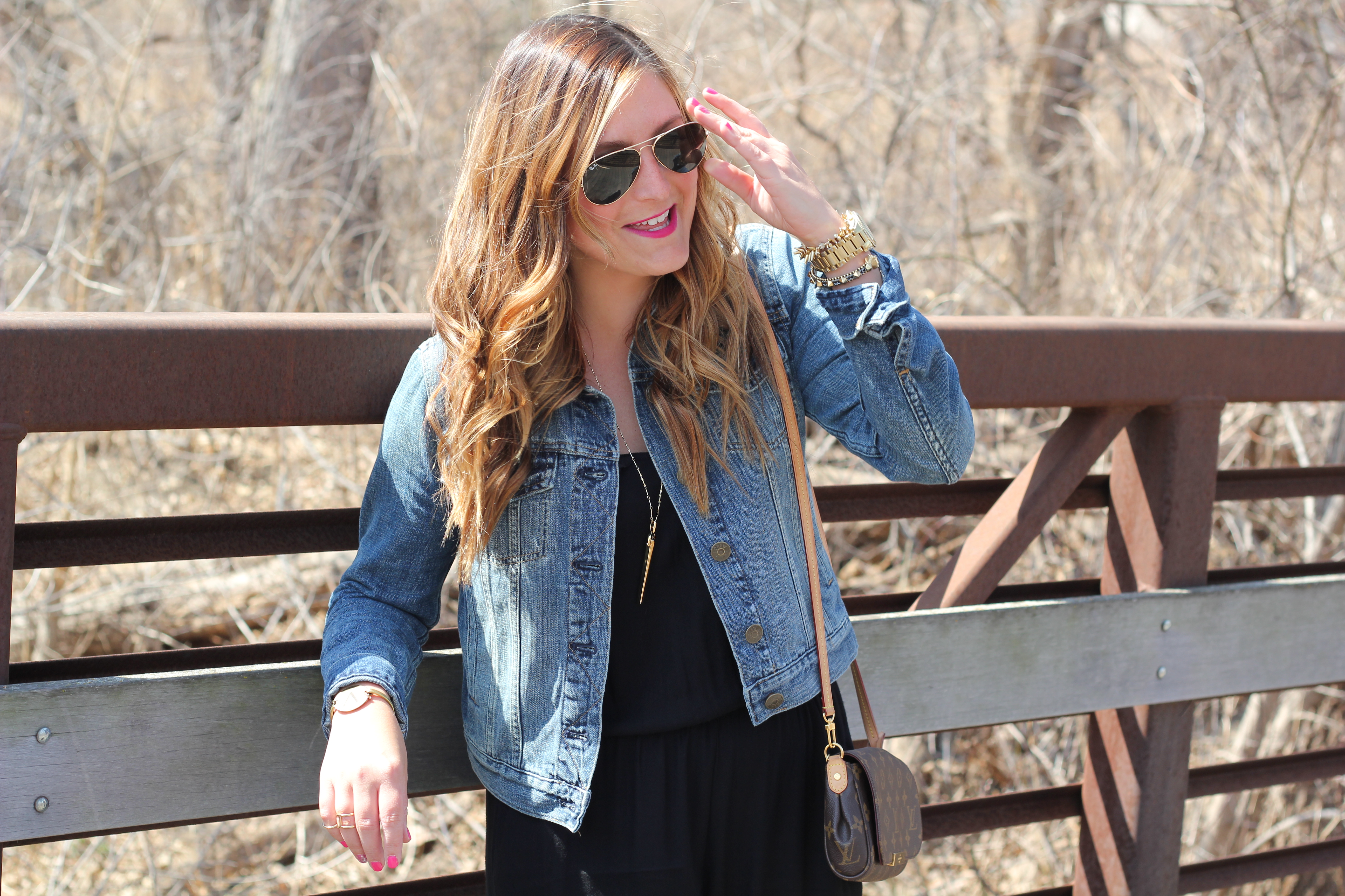 Jean Jacket//J.Crew // Romper//Zara // Shoes//Target // Jewelry//Stella & Dot // Crossbody//Louis Vuitton // Watch//Michael Kors // Sunglasses//Ray Ban