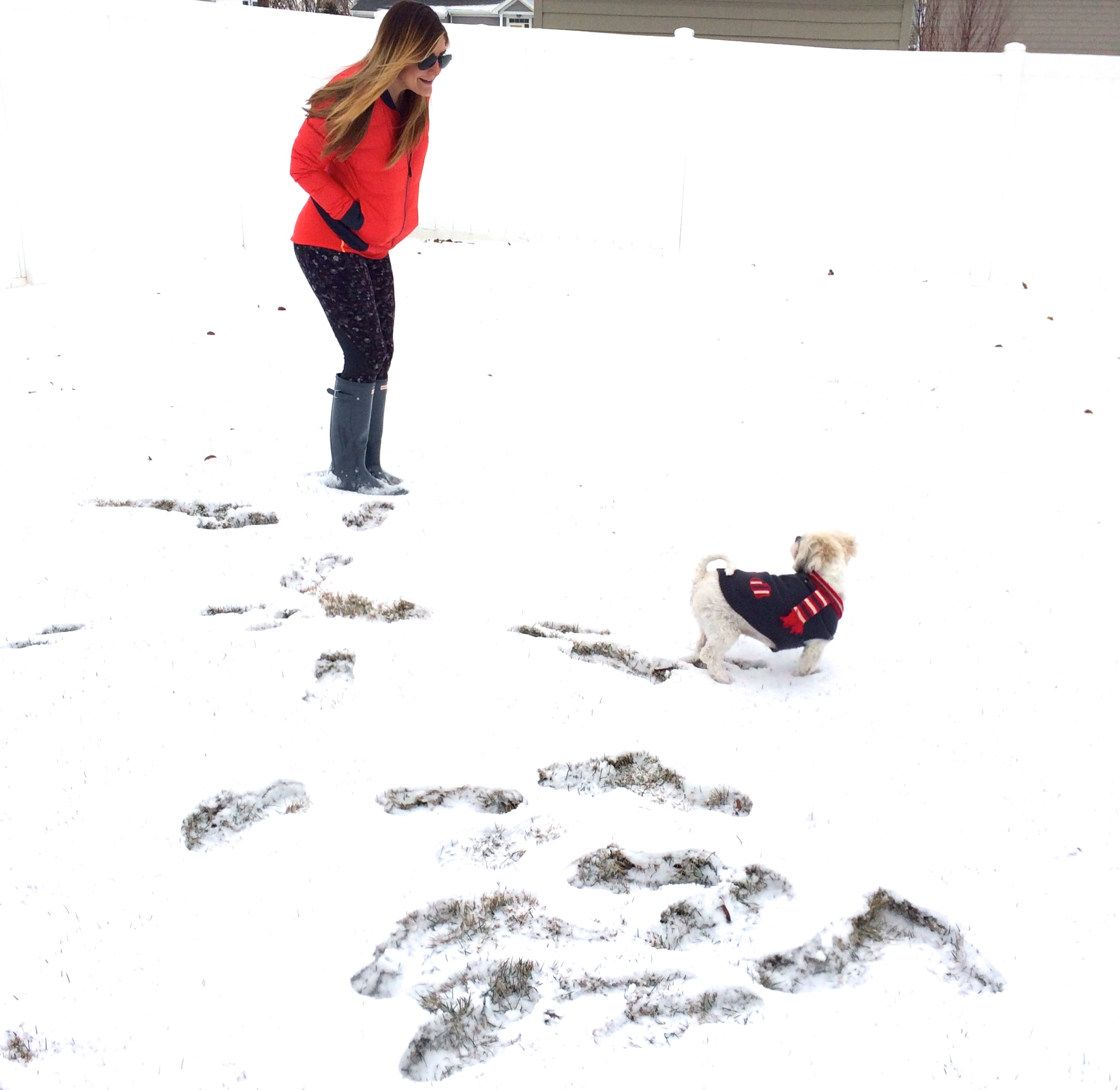 Happy New Year! With the new year, comes the cold and SNOW! Perfect weather to bring out those Hunter Boots and Puffer Coats! As much as I love neutrals, I love some bright color in the winter to bring some cheer to some otherwise, gloomy days and I’m loving pops of RED. 🙂 My go to neutral lately has been GREY, if you couldn’t tell ;). Thanks to my mom for snapping these photos while I was back home during the holidays. It was nice to be back home and have some much needed down time with family and friends. And of course, I LOVE my Teddy Bear and miss him dearly. I think these pics capture just that and how excited we were to spend some quality time together again. 🙂 Not to mention – we like to match. Oh how I need a dog!