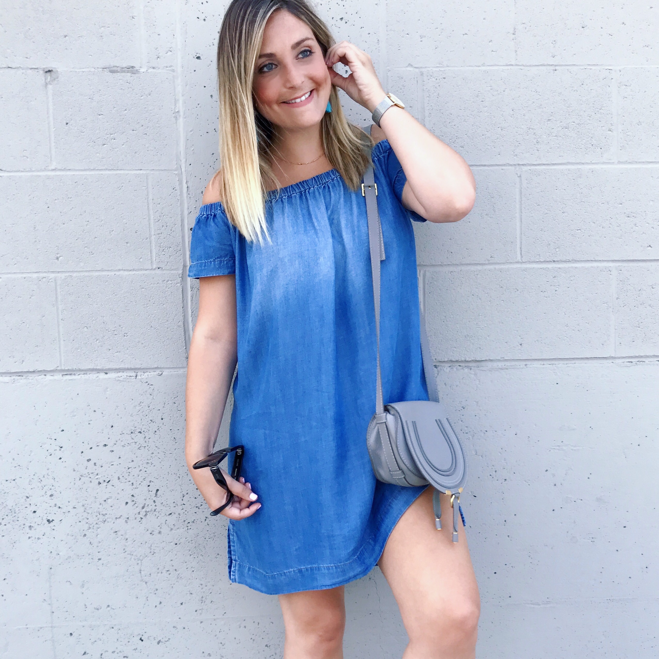 I wanted to do a post on summer dresses.  I find myself wearing dresses every day to work in the summers and I love it!  They are a definite go to in the summers because, well duh, they are easy and breezy – they take little to no thought as you just throw one on and go!  This chambray dress is SO soft and I love off the shoulder anything anymore.  🙂 I wore this on my 30th birthday during the College World Series.  It’s casual and breezy for those hot summer days/nights.  The second dress as you scroll down through this post is from a brand called Daniel Rainn.  I first discovered this brand of dresses at Nordstrom Rack and recently discovered that they have the brand at our local department store – Younkers and they are having a HUGE sale right now on dresses.  Daniel Rainn alway’s have the cutest prints and solid color dresses and I especially love them for work.  They have a great fit!  I recently bought 4 dresses while at Younkers a couple weekends ago for $70!  Talk about a good time to stock up on work dresses!  So if you’re in need of some great dresses for work or just for fun, you must check out Younkers!